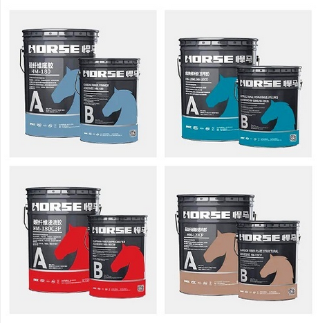 Low viscosity, good impregnation, with certain thixotropic property, used for impregnation and paste of reinforced component surface and fiber products, Horse carbon fiber adhesive's role is to be completely soaked in fiber products, and paste fiber products effectively on the component surface, thereby to strengthen and reinforce the components.