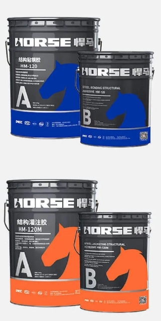 HM-120M Steel jacketing adhesive is new-type modified epoxy resin building structural perfusion adhesive, specifically for supporting adhesive bonded bar reinforcement. It can be bonded with various substrates and metal, with advantages such as high bonding strength, excellent toughness and shear strength, acid- alkali resistance, aging resistance.